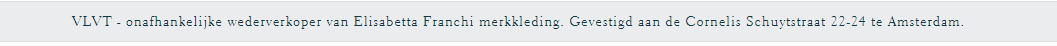 “VLVT - independent reseller of Elisabetta Franchi branded clothing. Located at Cornelis Schuytstraat 22-24 in Amsterdam.”